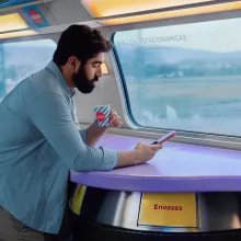 En OUIGO només pagues pel que portes de més i així estalvies diners. Porta gratis el teu equipatge de cabina juntament amb un equipatge de mà. Tria les opcions que més et convinguin (equipatge addicional, flexibilitat, mascotes...). Als nostres trens barats de dues plantes ho passaràs en gran, bé sigui viatjant en els nostres còmodes seients, gaudint del nostre sistema d'entreteniment o prenent alguna cosa en el OUIBAR. En OUIGO obtens el mateix per menys!