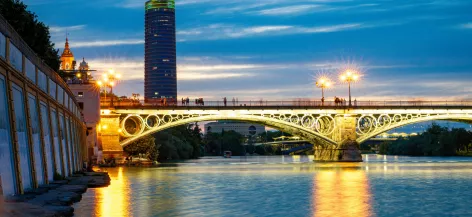 Seville at night: routes and experiences to enjoy the city after sunset 03/02/2026 #irasevilla #planes From the Giralda lights to Triana's tablaos. Explore the best of Seville nightlife, cultural visits and romantic river walks with OUIGO.