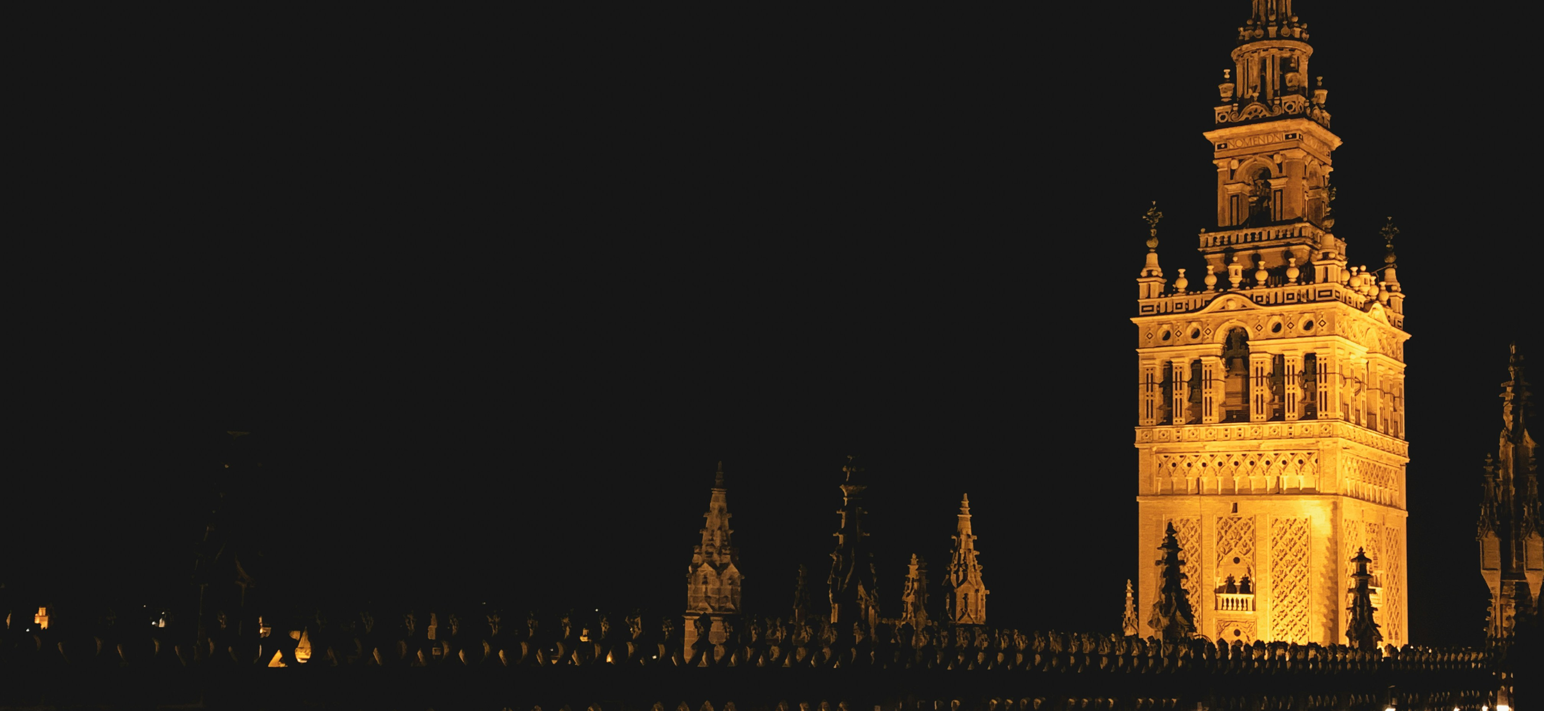 | Catedral y Giralda iluminadas | Casco histórico | Monumento y paseo | Exterior |